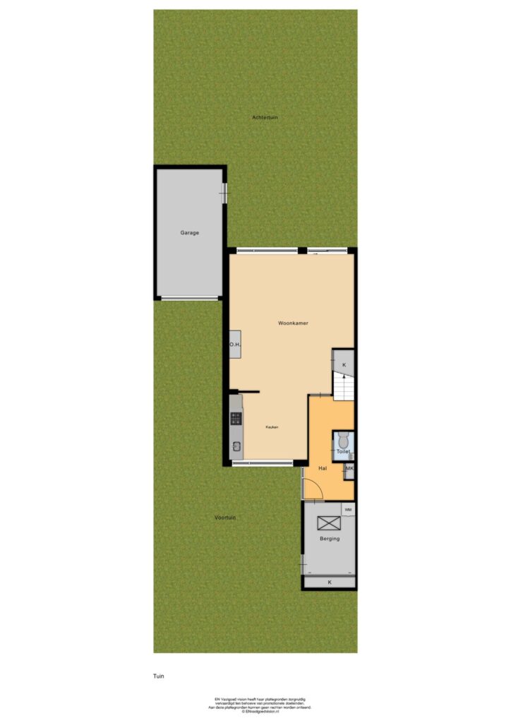 Vanuit de tuin is ook de garage toegankelijk via een zijdeur.