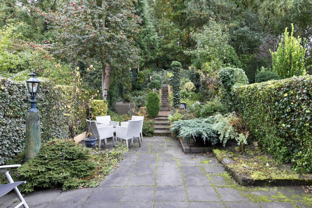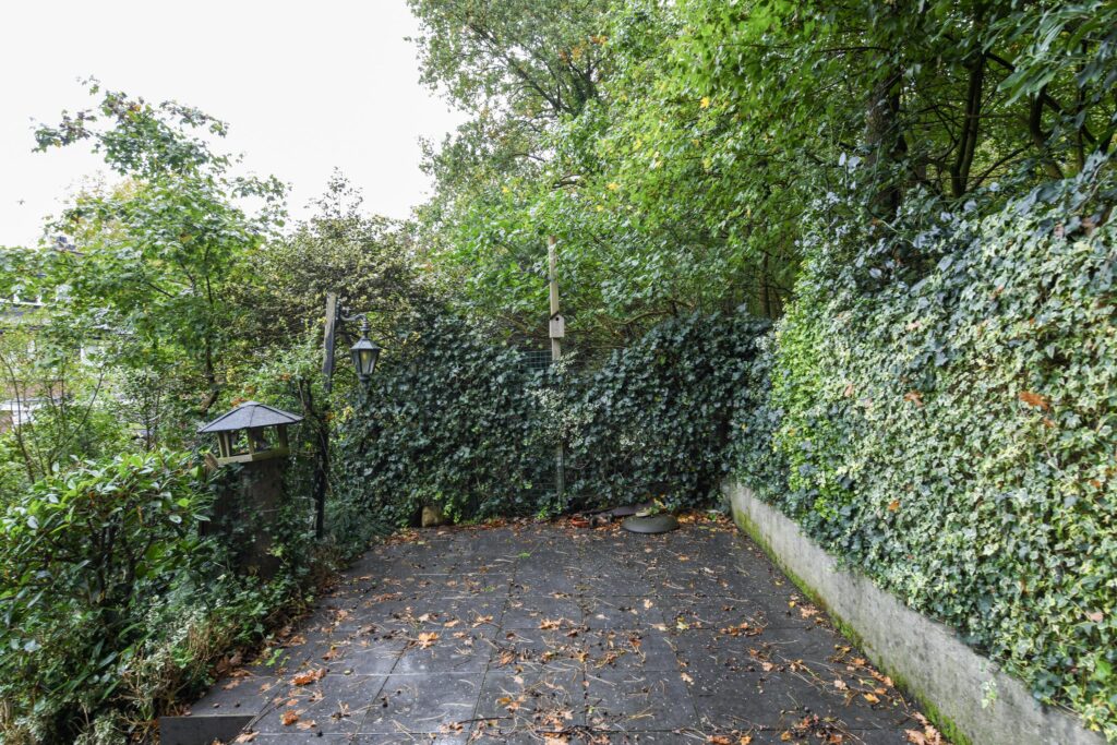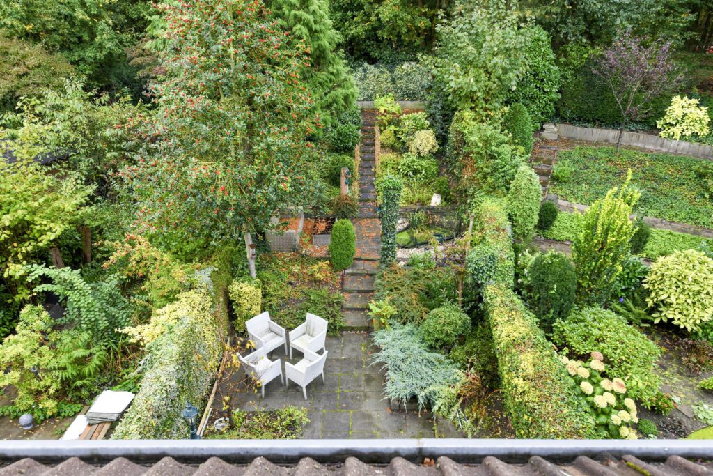 De tuin biedt veel privacy en grenst aan de achterzijde aan het park. Deze zonnige tuin is ca. 20 meter diep met verschillende hoogtenivo’s en ligt op het zuiden-westen. Op het aangelegde hoge plateau achter in de tuin kun je in de zomer heerlijk in volledige privacy genieten van de zon tot ’s avonds laat.