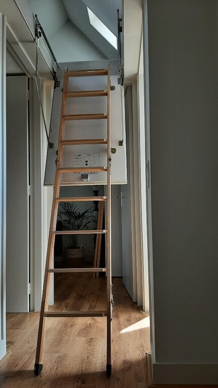 Via een vlizotrap kom je op de stahoge en over de volle breedte lopende 2e verdieping. Deze ruimte kun je goed gebruiken als een 4e slaapvertrek of als studeer-/werkplek of uiteraard als ruime berging.